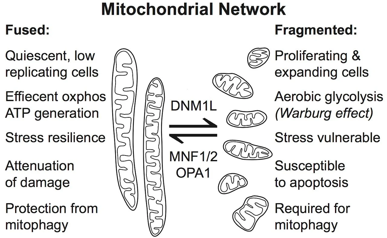 Mitochondria are dynamic organelles whose morphology is intimately linked to energy metabolism, quality-controls and stress responses. A delicate balance of fission and fusion events dictates cell fate, determining whether damaged mitochondria are recycled (mitophagy) or entire cells are eliminated (apoptosis).